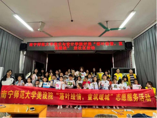 近日,华体会平台(中国)美术与设计学院组织志愿者走进武鸣灵水社区,开展了一场以“落叶绘情 童筑暖城”为主题的志愿服务活动,旨在丰富灵水社区文化生活,传递绿色环保理念。