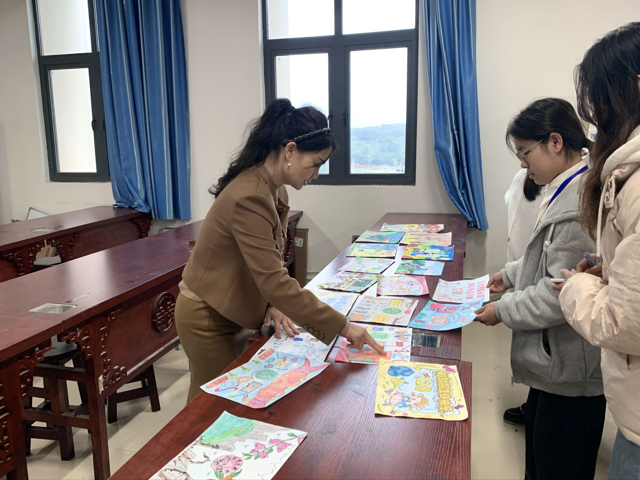 本次活动前期面向学院全体学子征集原创书画作品。在展评现场,工作人员们各司其职,有序开展作品展示、现场拍摄及引导教师评选等;线上则通过三韵书社官方QQ账号进行宣传,并收集整理“五日书画打卡”活动素材。墨香氤氲中洋溢着真挚的祝福,笔墨流转间传递着深厚的情谊。