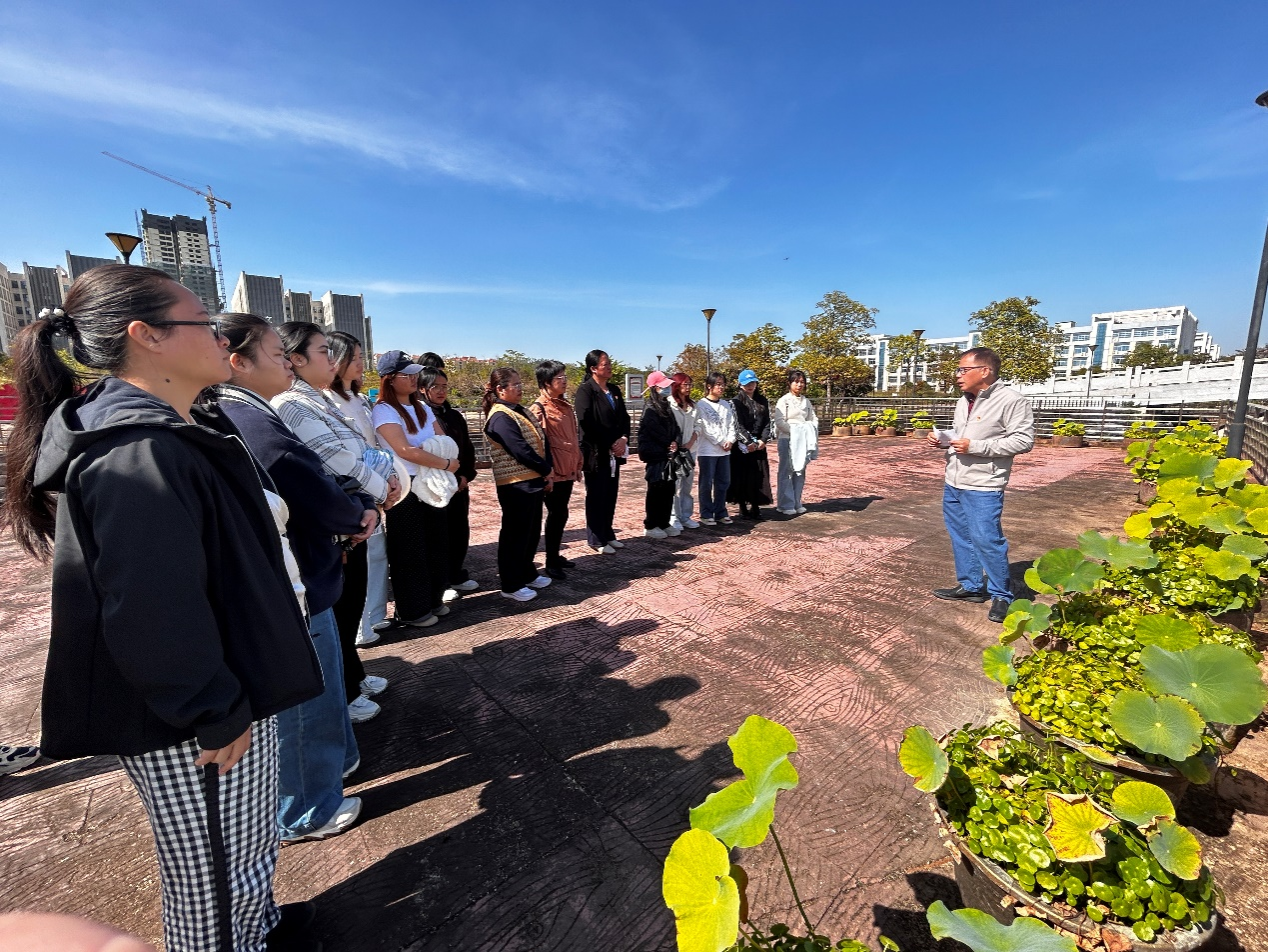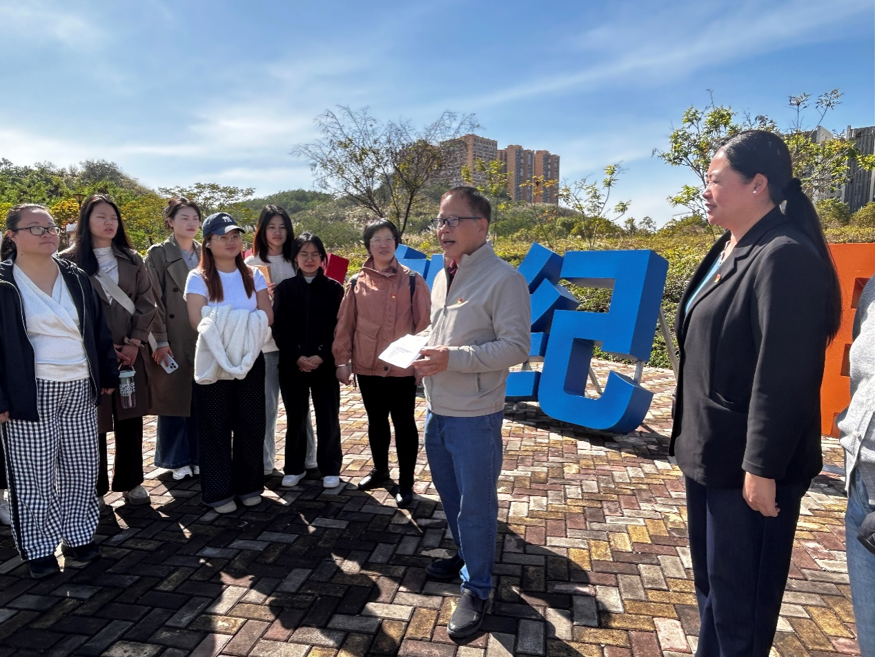 全体党员有序参观廉洁主题石碑展区,大家驻足于宣传栏前,细细观看,针对党纪条规交流各自的学习感悟,从而加深对全面从严治党战略的理解。余朝文书记在“学纪、知纪、明纪、守纪”的基础之上,向全体参与党员强调要以案为镜、以纪为尺,做到“心有敬畏、言有戒尺、行有底线”,将廉洁自律内化为精神追求、外化为行动自觉。随后,余朝文书记带领全体党员前往莲花观景台,引导同学们欣赏莲花“中通外直、不蔓不枝”的形态特点,感悟“出淤泥而不染,濯清涟而不妖”的高尚品格。以“莲”喻“廉”,背后有着深刻含义。