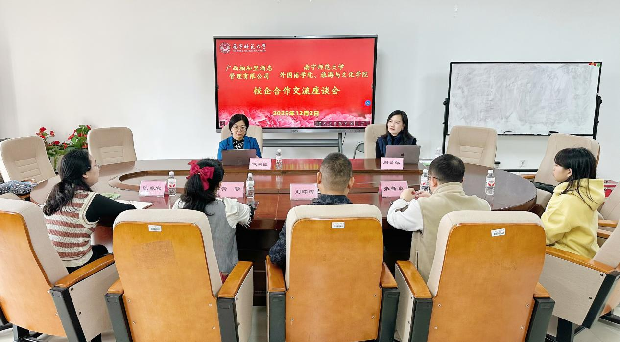 12月2日上午,广西相和里酒店管理有限公司总经理武同霞、总经理助理刘碧萍到访华体会平台(中国)外国语学院与旅游与文化学院。外国语学院副书记刘晖晖、旅游与文化学院副书记黄珍及相关学院就业负责人接待,双方重点对接就业实习基地建设及校企深度合作事宜。