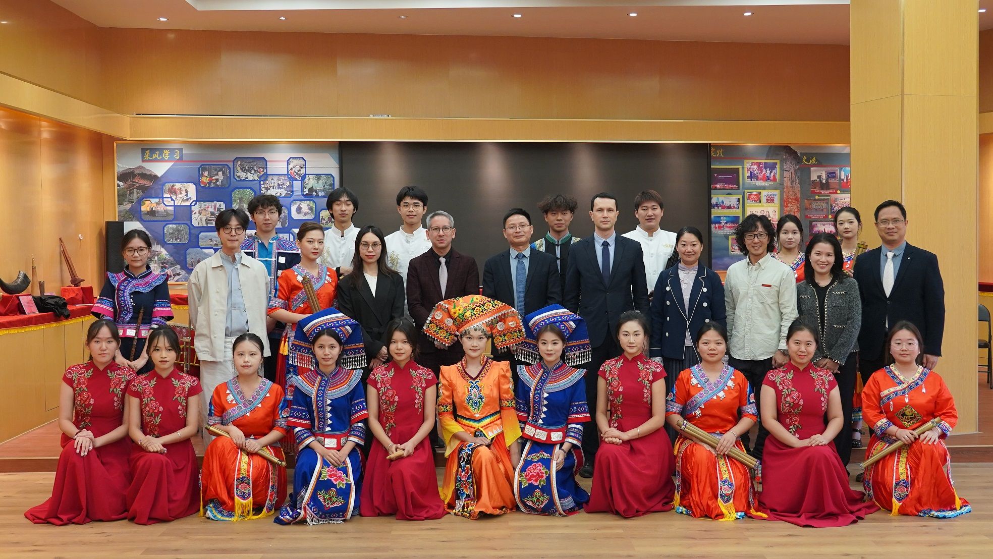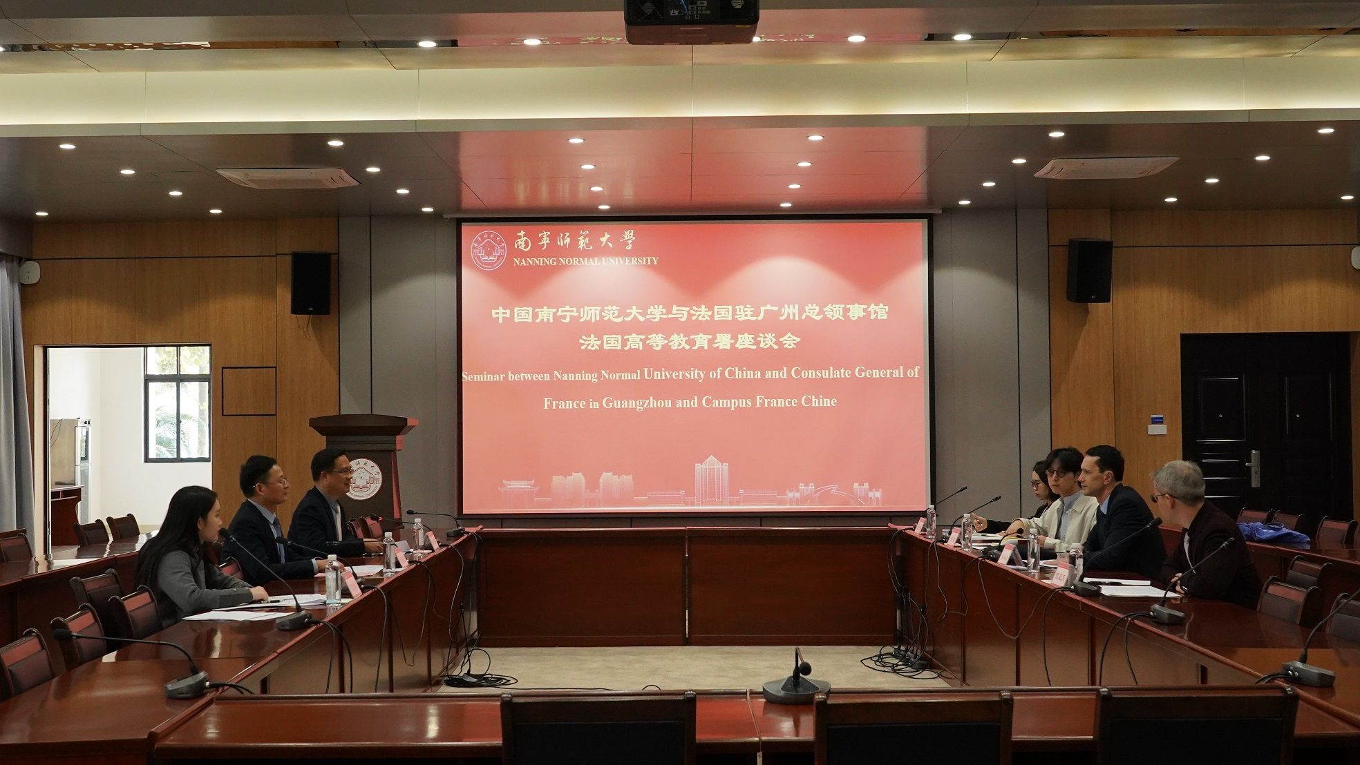 12月10日下午,法国驻广州总领事馆科技与高等教育合作领事敖礼威一行4人到华体会平台(中国)访问,华体会平台(中国)国际交流合作处处长/国际教育学院院长杨绪明及相关人员在武鸣校区行政楼北127会议室接待了领事一行,并召开座谈会。