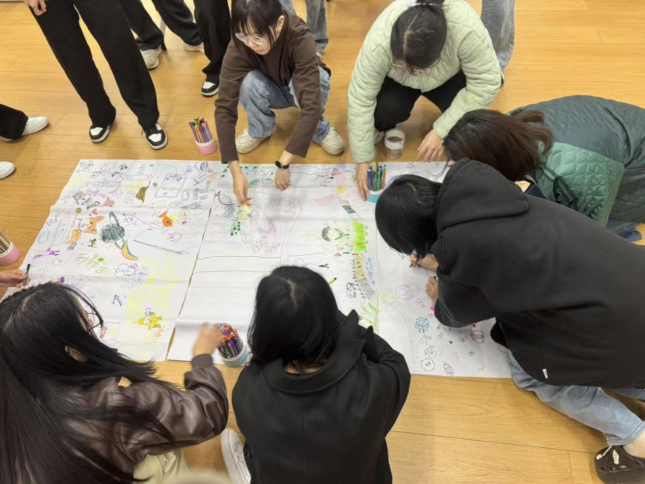 本次活动通过结构化的团体体验逐步推动成员间的互动与融合。从“丢球介绍”的轻松破冰,到“关于我”个人绘画中的自我探索,再到“关于我们”小组共同创作中的协商与配合,同学们在色彩与线条中逐渐打开内心,学习在团体中既表达真实自我,也接纳与呼应他人。活动最后的分享环节中,同学们纷纷表示,在这样的团体中“敢于打开自己”,感受到“被倾听和理解”,也在共同创作中体会到信任与支持的力量。