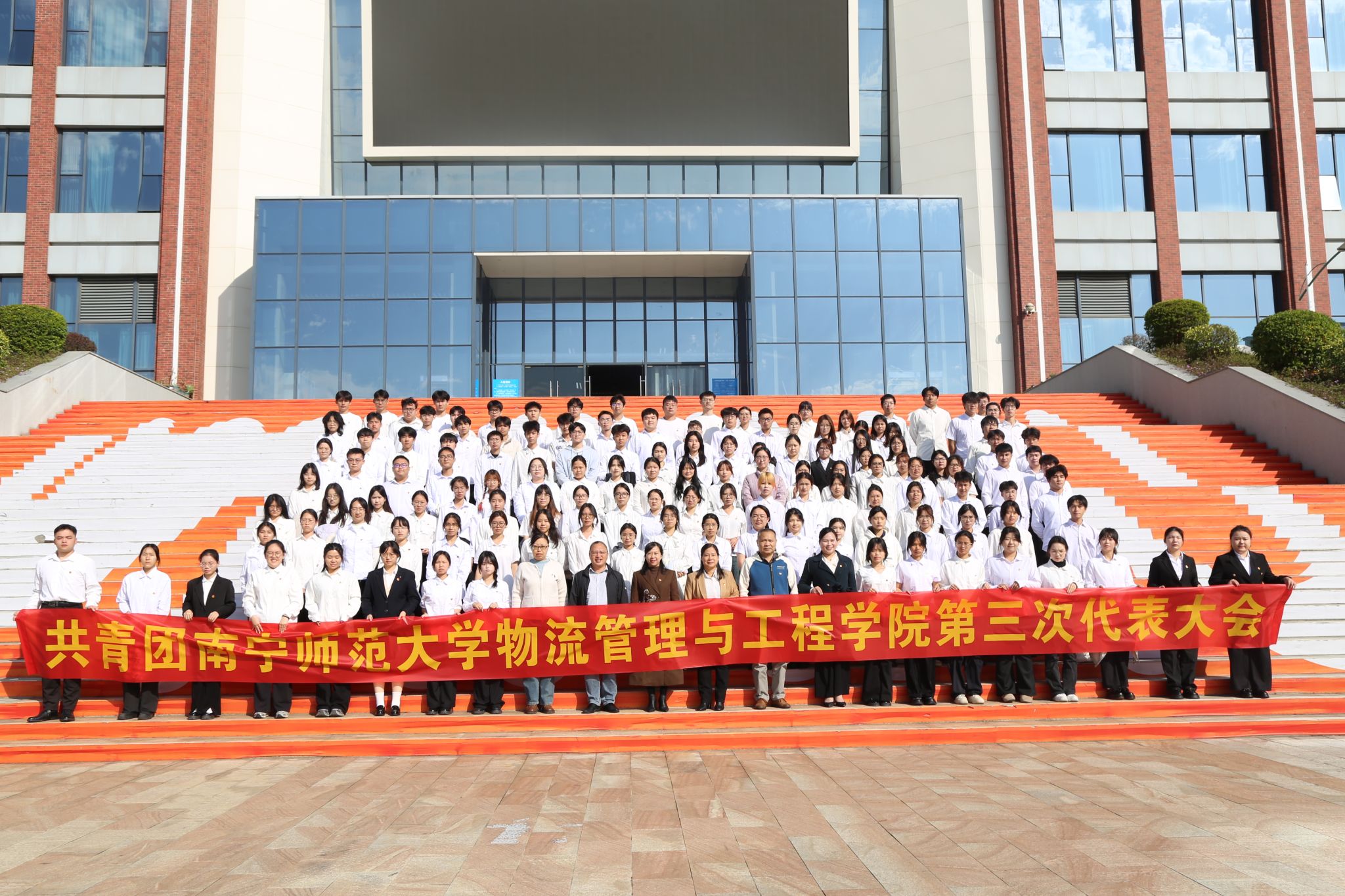 12月14日上午,共青团华体会平台物流管理与工程学院委员会第三次代表大会在武鸣校区于图书馆报告厅召开。华体会平台团委副书记李静、学院党委书记陈兵、党委副书记黄宇、团委书记黄海嫚、院长助理李梅、物流管理工程系老师欧阳出席大会开幕式,学院辅导员老师及各班级学生代表共150余人参加会议。