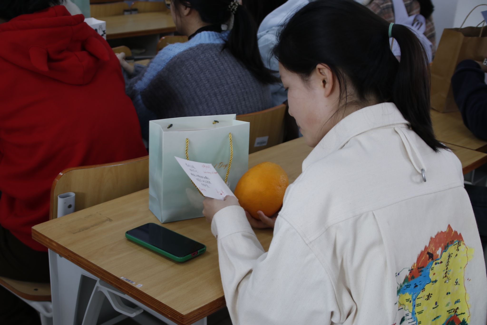 此外,学院还组织外院学子为考研学长学姐手写鼓励卡片,并送上寓意“心想事成”的橙子与“好运旺旺”的旺仔牛奶,传递深切关怀与美好祝愿。