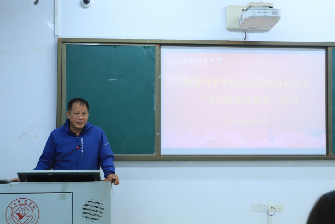 为切实做好2026届毕业研究生就业指导工作,帮助毕业生明晰就业方向、缓解就业焦虑、提升就业竞争力。12月17日下午,教育科学学院在文综303教室举办“书记院长谈就业”专题活动。学院党委书记余朝文、院长李强出席活动并作专题指导,2026届全体毕业研究生参会,活动由辅导员周芳主持。