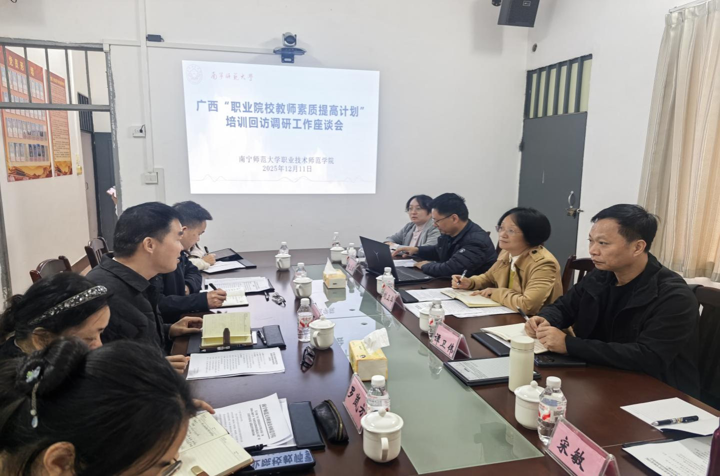 为深入贯彻落实习近平总书记关于教育的重要论述和全国职业教育大会精神,全面了解学院承担的广西2024年、2025年“职业院校教师素质提高计划”的培训质量和职业院校的培训需求,12月11日,职业技术师范学院党委副书记刘卫华带领5名专任教师组成调研组赴广西现代职业技术学院、广西工贸职业技术华体会平台、河池市技工华体会平台,开展学员回访与专题调研。