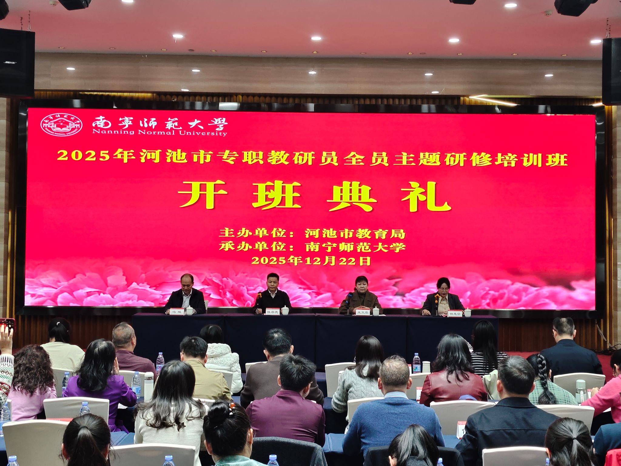 本次培训聚焦教研员专业素养提升与教研工作创新发展,课程设置涵盖政策解读、专业发展、技术融合、实践探索等多个维度,邀请区内外知名专家授课,并安排县区经验交流与区域教研规划研讨,旨在为河池市教研队伍建设与“十五五”教研工作谋划提供坚实支撑。