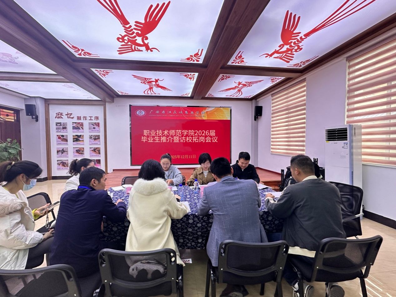 12月11日下午,职业技术师范学院副院长蓝洁带队,携相关专业教师一行赴广西右江民族商业华体会平台,开展2026届毕业生推介暨访校拓岗会议。广西右江民族商业华体会平台副校长吴天元、教务处主任王娟及相关专业教师代表参加会议,围绕毕业生就业对接与岗位需求适配展开深入交流。