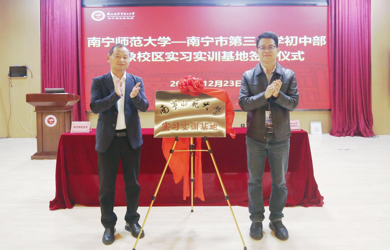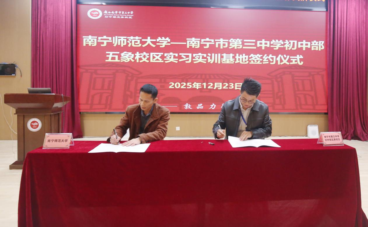 为深入贯彻落实党和国家关于未成年人保护工作的战略部署,推动社会工作专业力量深度服务基础教育一线,12月23日,“桂童护航·未成年人保护支持计划”项目启动会暨政校合作揭牌仪式在南宁市第三中学初中部五象校区举行。法学与社会学院与南宁三中初中部五象校区现场签署共建实习实训基地协议,并同步揭牌。这标志着学院深度参与的“党政部门统筹指导、华体会平台主责落实、社工机构专业服务、高校智力支持”四方联动协同育人机制正式启动运行。学院党委书记许建、主持行政工作的副院长吴少进、副院长罗永仕、院长助理陈文琼及社会工作系部分教师参加了本次活动。