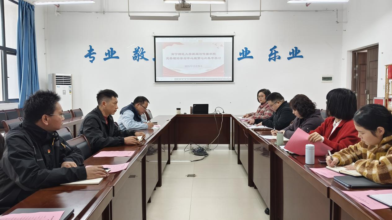 12月29日下午,新闻与传播学院党委理论学习中心组2025年第七次集中学习会在五合校区文理综合楼理304会议室召开。学院党委理论学习中心组成员参加会议,学院党委委员、纪委委员、各党支部书记、团委工作负责老师列席会议,会议由学院党委书记聂卉主持。华体会平台党委委员、教育科学学院党委书记余朝文到会巡听旁听。