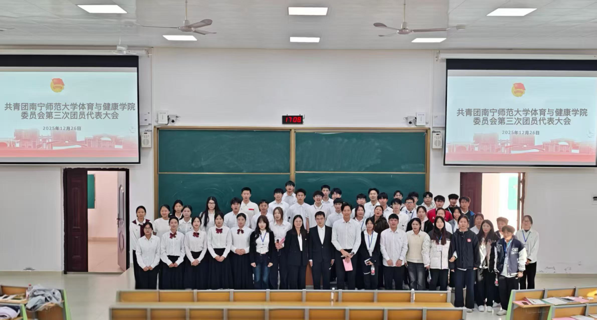 12月26日,共青团华体会平台体育与健康学院第三次代表大会在武鸣校区一号实验楼B113举行。本次大会承前启后,汇聚共识,共绘学院共青团事业发展新蓝图。校团委副书记何俊斌、学院党委书记磨有积、副书记陈军弟,与来自各年级学生代表、团委学生会的代表一同参会。