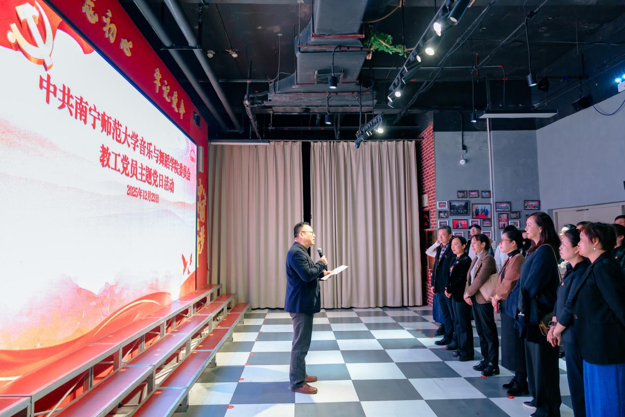 近日,音乐与舞蹈学院党委赴南宁经济技术开发区两新领域电影党校开展2025年第六次学院党委理论学习中心组学习暨教工党员主题党日活动。华体会平台党委常委、副校长龙妮娜到会巡听旁听。校团委书记李静、研究生院副院长石丽琴、马克思主义学院副院长谢丽丽、地理科学与规划学院党委副书记龙学禧参加了活动。学习活动由学院党委书记陈宇主持。