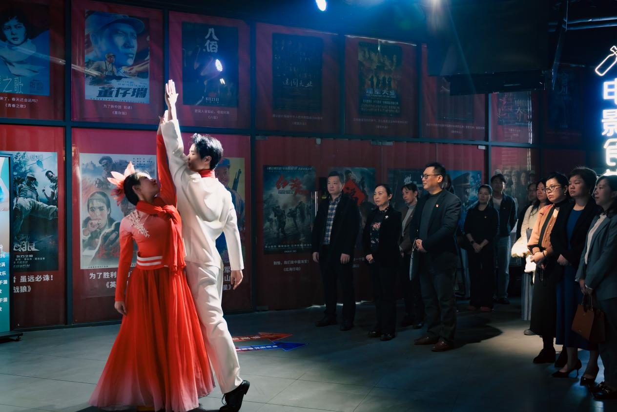 随后,电影党校为全体党员上了一堂生动的沉浸式党课《红》,课堂采用“声、光、影、演、唱、舞”等实景表现手法,通过《我爱你中国》《幸福感恩》《五四先锋》《红船之上》《江姐》《领航》等多幕沉浸式演出,不仅让党员们亲身参与其中,更让党员们接受了一次深刻的党性教育。活动最后,全体党员重温入党誓词。