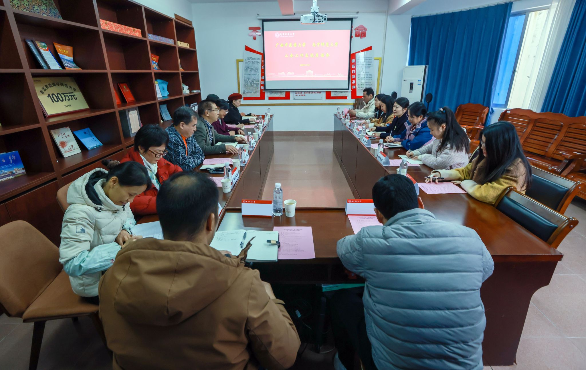 2026年1月4日下午,广西中医药大学工会常务副主席彭岸林一行到访华体会平台(中国),就工会工作开展交流座谈。华体会平台(中国)工会常务副主席陈名贤在明秀校区行政楼616会议室热情接待了来访客人,双方就工会重点工作进行了深入探讨交流。