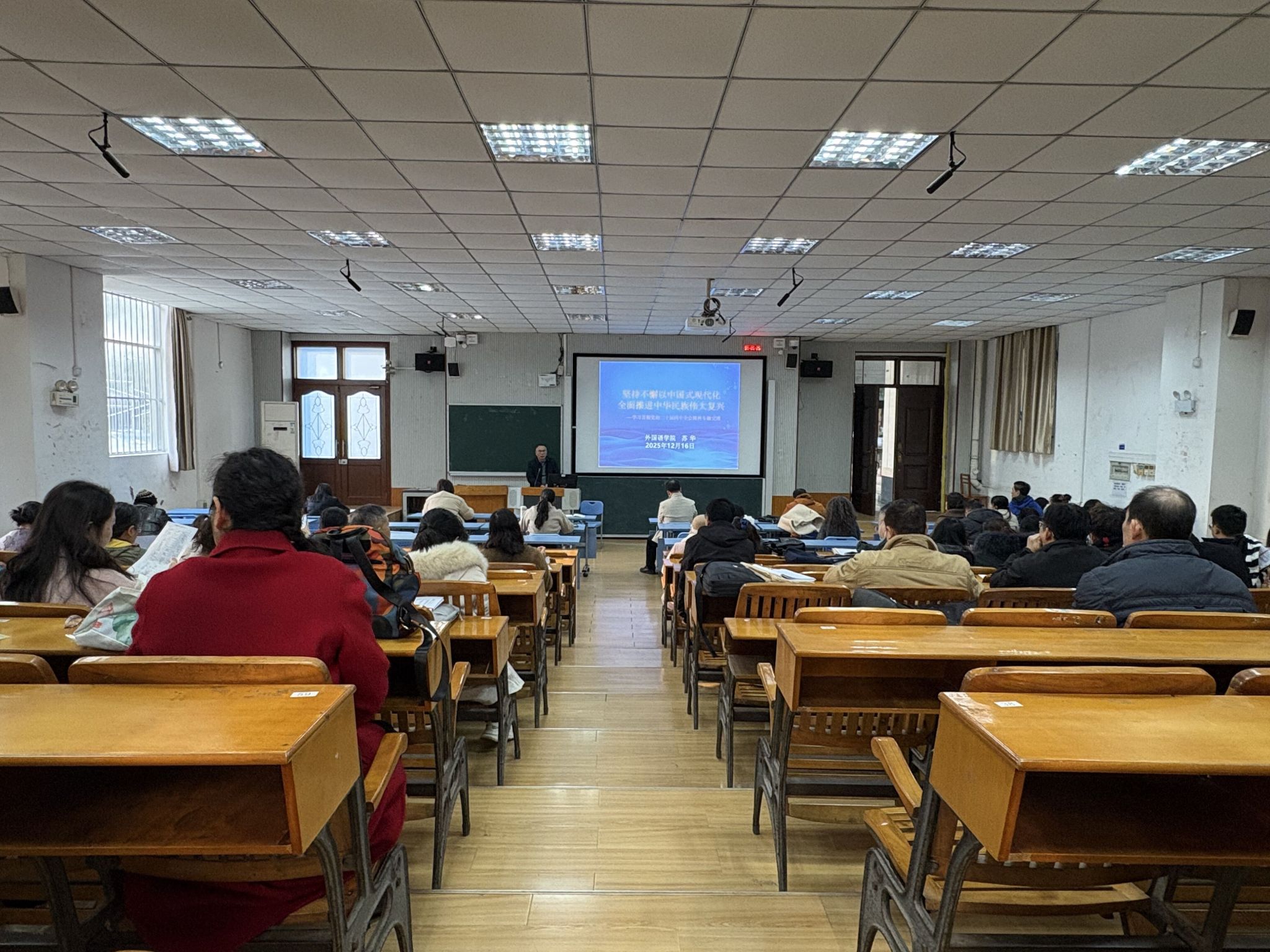 1月8日上午,外国语学院在明秀校区文星楼110教室召开党的二十届四中全会精神宣讲大会,由学院党委书记苏华主讲,全院教职工参会学习,深入领会党的二十届四中全会精神与“十五五”规划部署,凝聚发展共识。