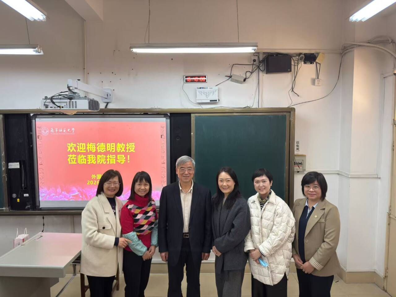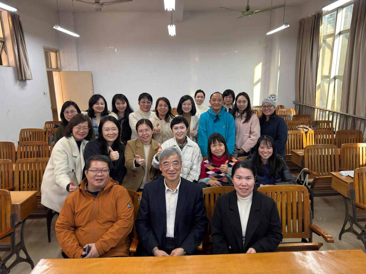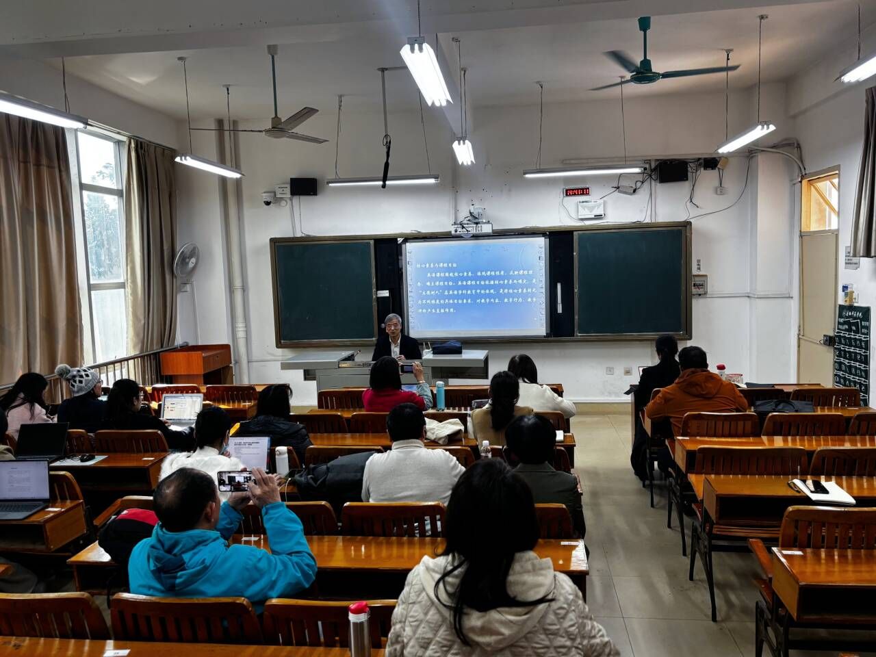 1月9日下午,华体会平台明秀校区迎来了一场英语教育界的学术盛宴。教育部高中及义务教育英语课程标准修订组组长、上海外国语大学博士生导师梅德明教授应邀来访,为外国语学院教师开展了一场题为“指向学生核心素养发展的教学评理念与实践”的专题学术讲座。本次讲座由外国语学院副院长蒙岚教授主持,梅教授与外国语学院教师们共同探讨了英语教育革新的前沿方向与实践路径。