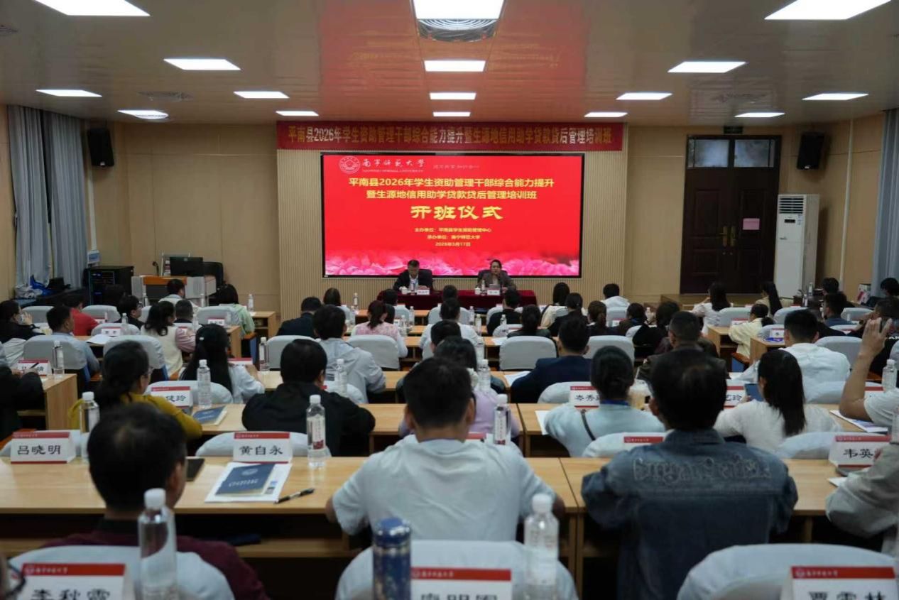 3月17日,由平南县学生资助管理中心主办,华体会平台(中国)承办的“平南县2026年学生资助管理干部综合能力提升暨生源地信用助学贷款贷后管理培训班”正式开班,82名学员参加本次培训。
