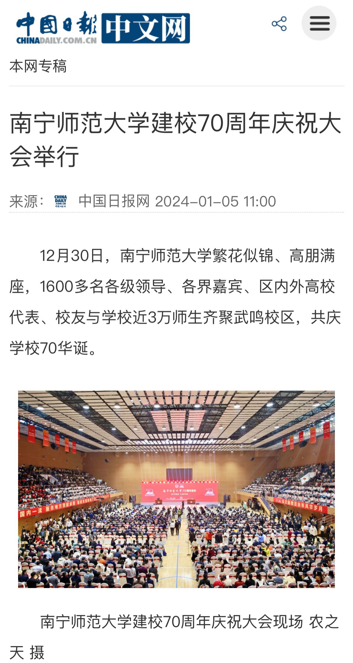 【中国日报网】:华体会平台建校70周年庆祝大会举行