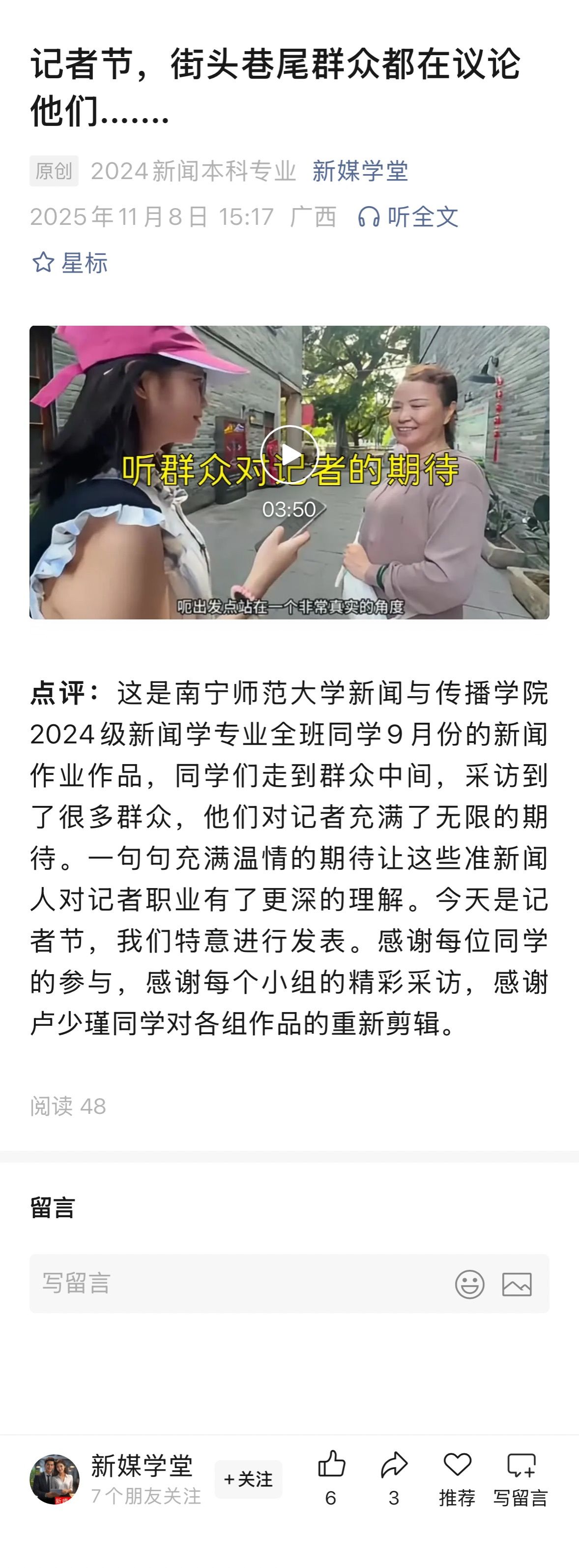 【新媒学堂微信公众号】记者节,街头巷尾群众都在议论他们.......