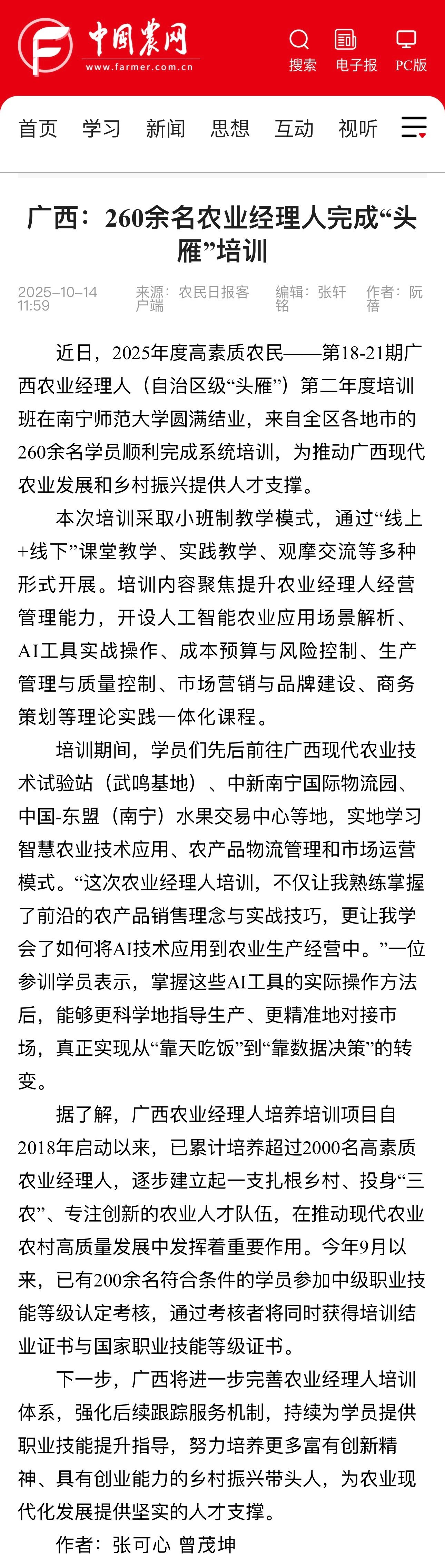 【农民日报】广西:260余名农业经理人完成“头雁”培训