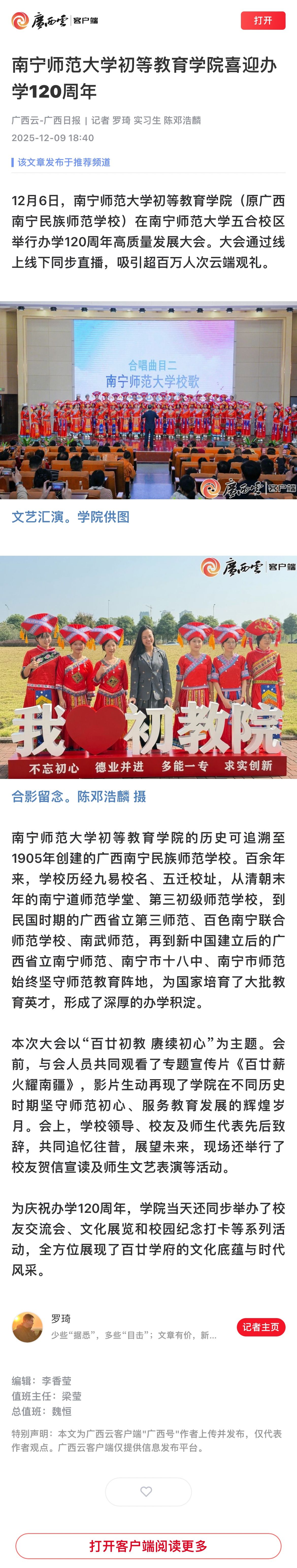 【广西云】华体会平台初等教育学院喜迎办学120周年
