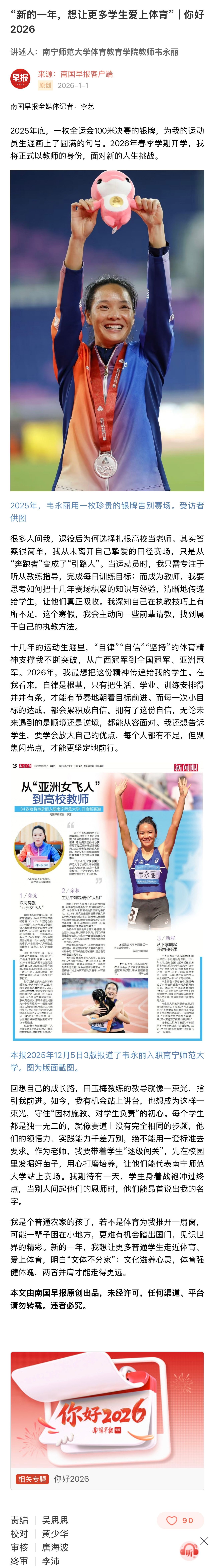 【南国早报】“新的一年,想让更多学生爱上体育” | 你好2026