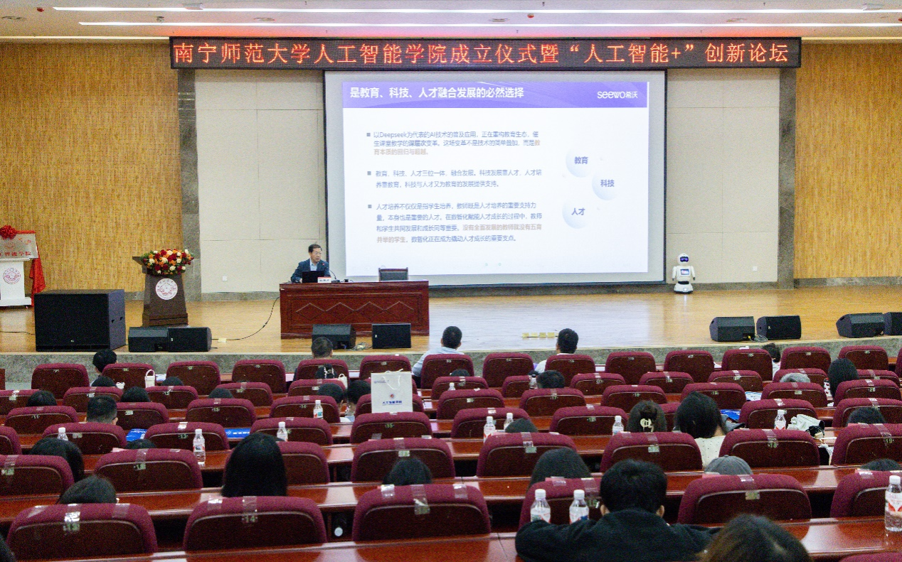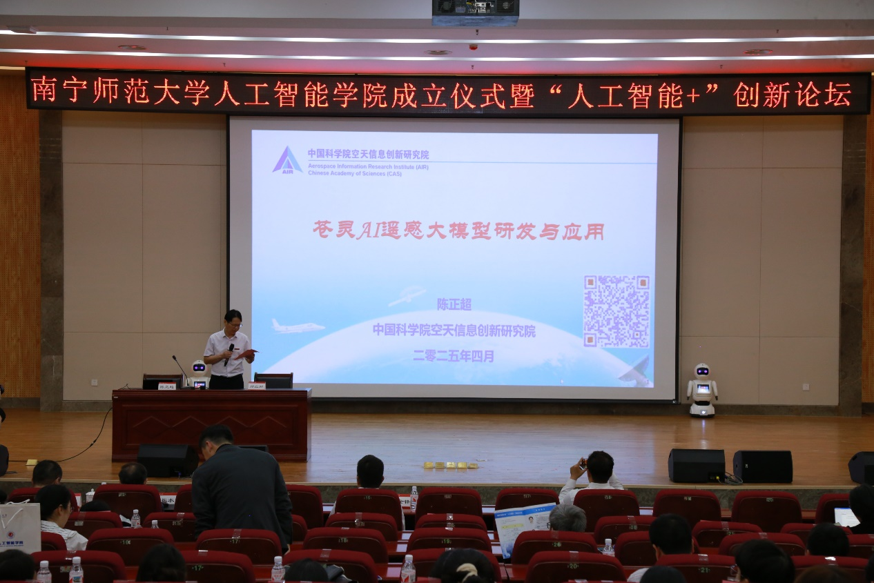 4月18日,人工智能学院在图书馆报告厅举办“人工智能+”创新论坛。本次论坛邀请了中国科学院空天信息创新研究院研究员陈正超博士、视源股份未来教育集团副总裁魏振水和广西壮族自治区通信产业服务有限公司技术服务分公司副总经理杨金锋作为主讲嘉宾,人工智能学院院长闭应洲教授主持,行业企业代表、师生代表等共计300余人参加。