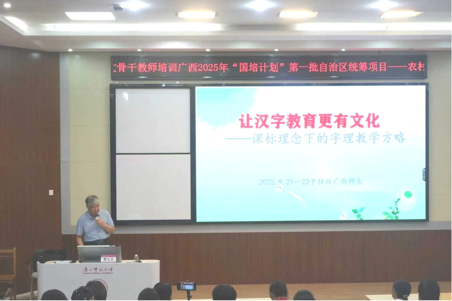 9月21日上午和22日上午,应广西师范大学文学院的邀请,华体会平台(中国)黄亢美研究员作了题为“让汉字教育更有文化——课标理念下的字理教学方略”的主题报告。该校文学院承办的“国培计划”小学语文骨干教师培训班120名学员聆听了讲座。