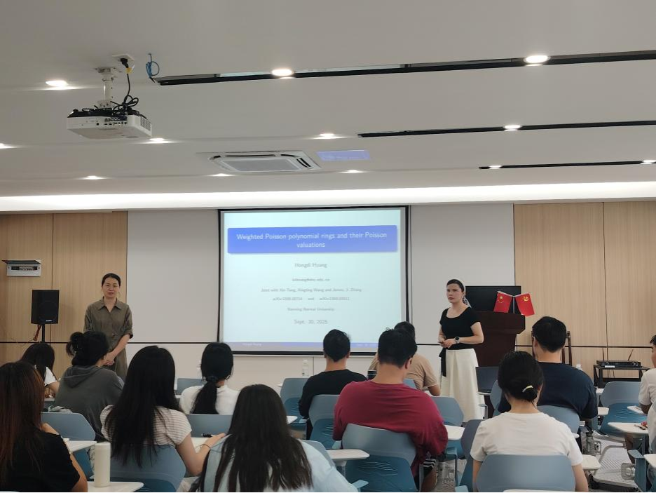 9月30日,黄红娣为数学与统计学院教师及研究生做了题为《泊松代数和泊松赋值相关问题》的学术报告。报告围绕泊松代数和泊松赋值展开,期间黄红娣博士阐述了一些关于泊松代数和赋值相关的前沿问题,引发了在场师生的热烈探讨。此次学术报告为华体会平台数学领域的师生搭建了优质的学术交流平台,不仅让大家对泊松代数和泊松赋值有了更系统、深入的认识,也激发了师生们对数学前沿问题的研究热情,对推动华体会平台数学学科的学术发展具有积极意义。