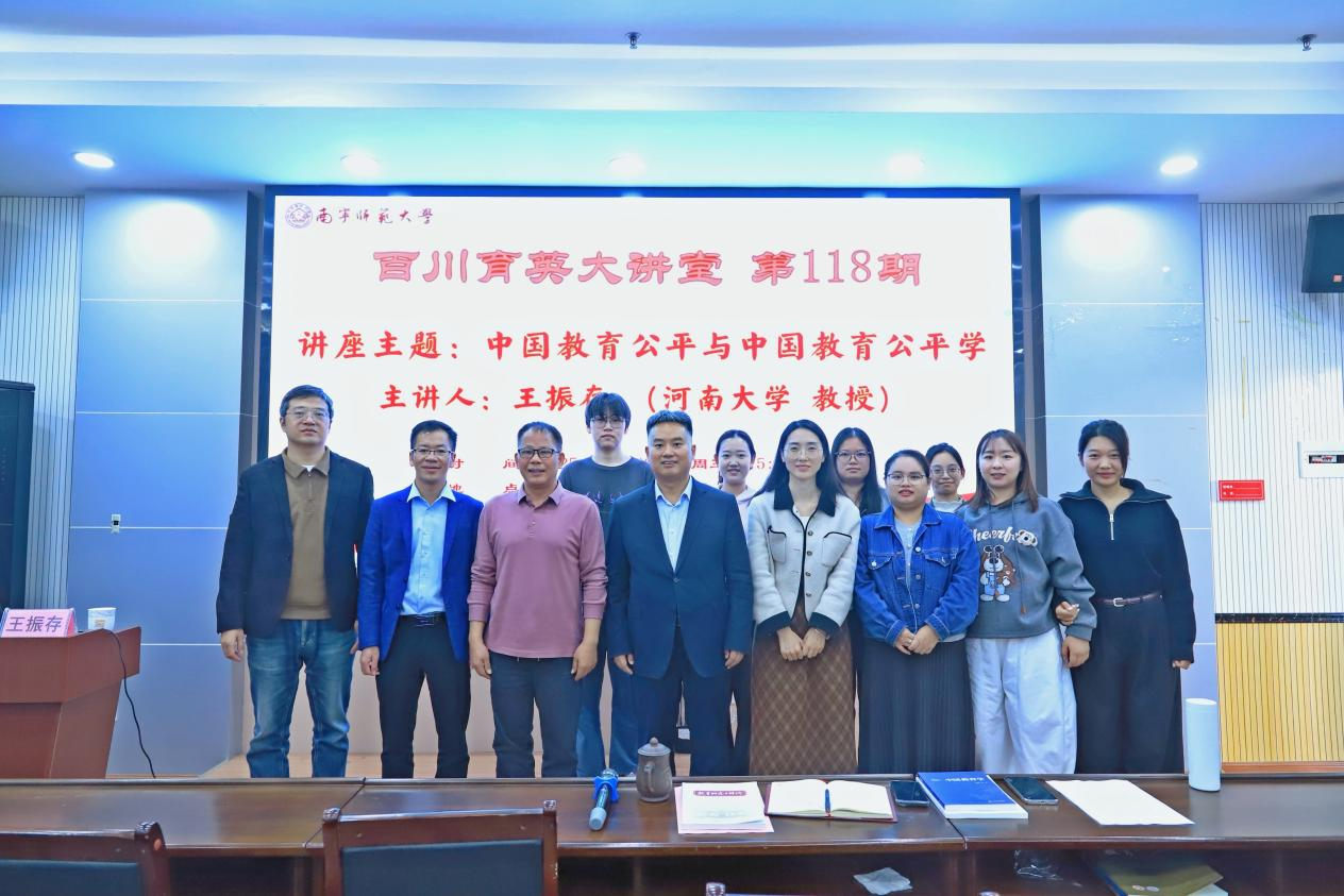 11月26日,由华体会平台教育科学学院主办、广西教育现代化与质量监测研究中心承办的第118期《百川育英大讲堂》讲座在五合校区理综楼北1003室顺利举行。本次讲座特邀河南大学王振存教授,以“中国教育公平与中国教育公平学”为主题展开深入分享,由教育科学学院党委书记余朝文教授主持。